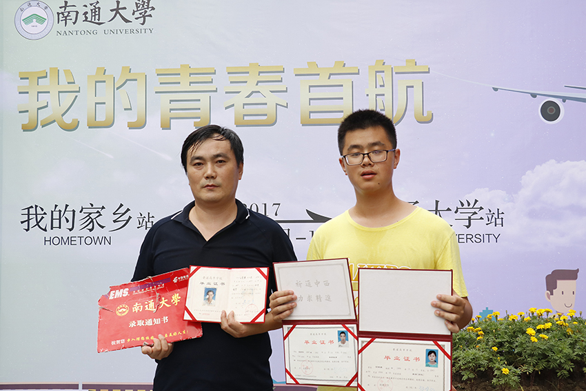 今年我院2017级的迎新工作还因为两位特别学生的到来受到了南通电视台、南通日报、南通周刊等新闻媒体的广泛关注。其中来自通州的新生葛剑波可谓是与纽约国际967线路测试有着不解之缘。报到当天,他随身带着一张父亲的毕业证书,引起了现场师生的热议。原来葛剑波的父亲王葛军在1995年考入原南通师专,攻读体育专业。与此同时,葛剑波的舅舅、舅妈也曾就读于通大,他的堂爷爷还曾在原南通师专物理系工作过,可谓一家都是通大的铁杆粉。如今葛剑波自己也加入了通大大家庭,立志要为通大的发展贡献一份自己的力量。另外一位引发广泛关注的学生是来自贵州六盘水的陈旷宇。这位拥有神秘身份“穿青人”的陈同学每次都乐于向大家介绍自己的民族,那是我国56个民族以外还未被识别的民族,至今还保留着许多独特的民族习俗。他的到来也印证了通大校园文化的多元与包容。