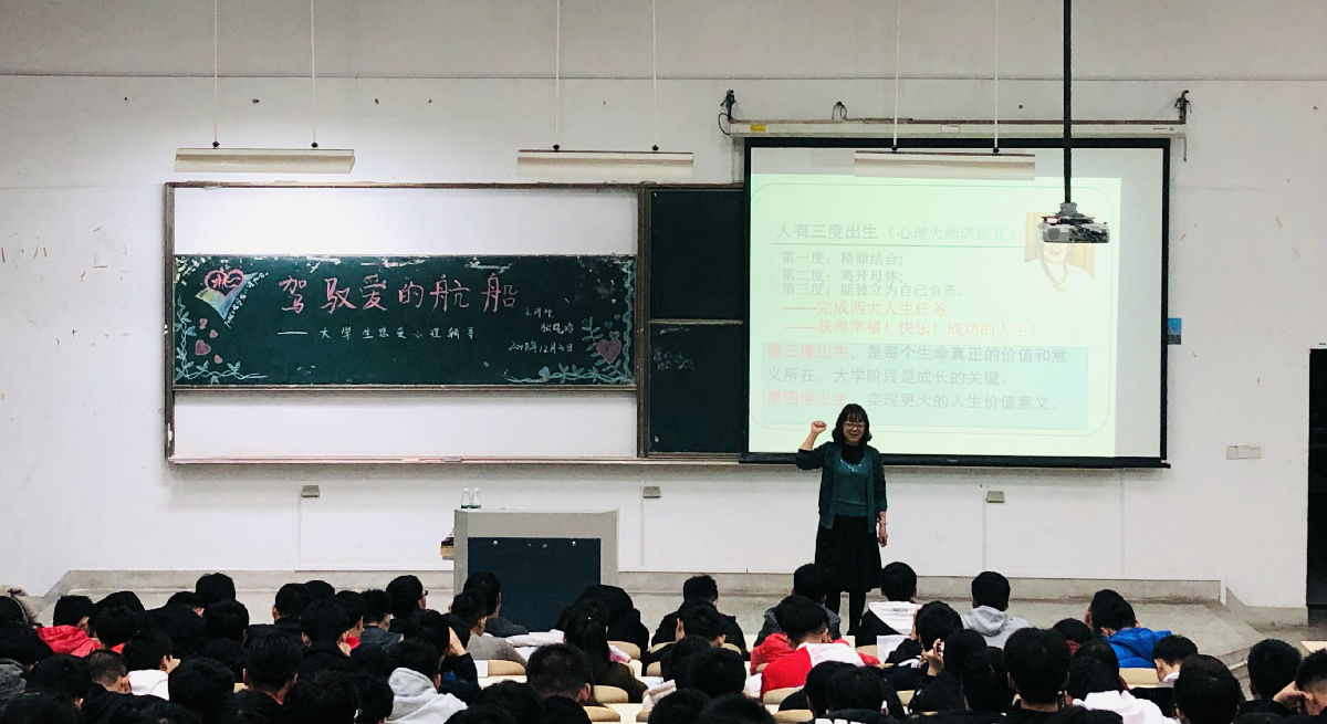 张晓玲老师指出,大学是人生成长的关键,是大学生实现人生价值的重要起步阶段。大学生应当不断提升自己、完善自我,并在爱的奉献中成长。张老师通过陶行知的“爱之酒,甜而苦;两人喝,是甘露;三人喝,酸如醋;随便喝,毒中毒”名言警句给学生介绍了“爱”的两面性。张老师还为同学们讲述了“网恋”带来的不确定性和危险性,提出真正能维持感情的是每个人自身的内在美。在讲座的最后,张老师教育学生面对失恋时要有豁达的心态,并在失恋中认识自己、反省自己,从而通过自身努力,不断追求完善自己。