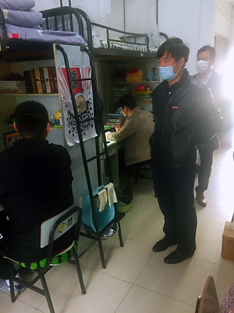 4月22日上午,校长施卫东深入其担任班主任的纽约国际967线路测试机设191班以及机设192班学生宿舍看望返校学生,开展学生宿舍巡课。