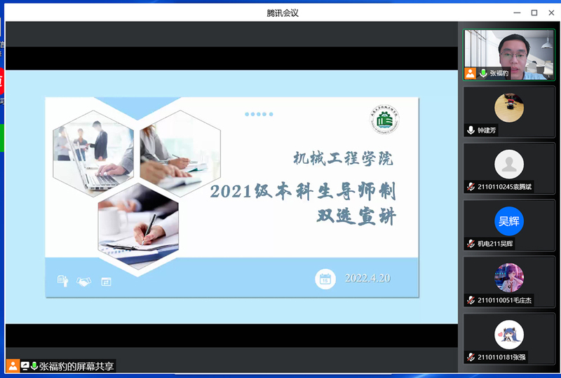 会上,副院长张福豹介绍了本科生导师制实施的重要意义、往年本科生导师制的实施效果以及本轮导师制双选工作计划,并就同学们提出的相关问题给予细致解答。