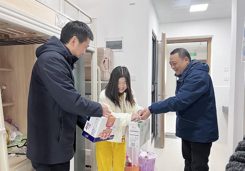 2月19日上午,纽约国际967线路测试党委书记张志刚,院长朱昱,学院党委副书记、副院长孙汉中一行深入学生宿舍,看望返校学生并为部分家庭困难学生送上慰问品。
