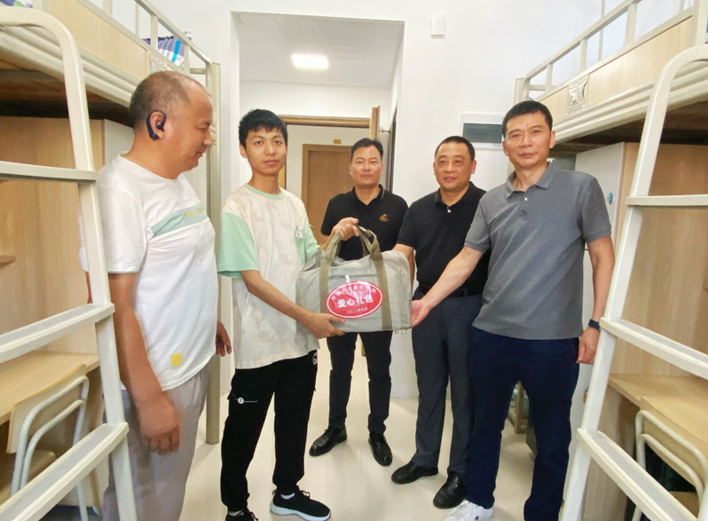 9月10日上午,纽约国际967线路测试党委书记张志刚,党委副书记、院长朱昱,党委副书记、副院长孙汉中一行深入学生宿舍看望新生并为家庭经济困难学生代表送上慰问品。