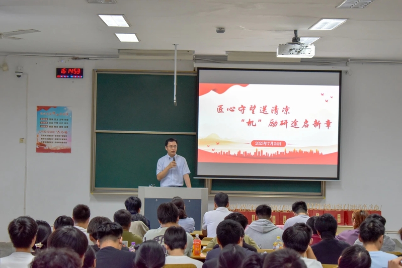 张福豹表示,学院始终高度重视并全力支持对考研学子的关心与指导工作。他鼓励同学们珍惜暑期黄金备考期,勇于追求更高学术平台,将个人理想融入国家机械行业发展大局,在奋斗中实现人生价值。同时,他重点强调了暑期留校期间的安全问题,叮嘱同学们务必注意人身安全、高温防暑、物品保管及用电规范,确保平安顺利度过备考阶段。
